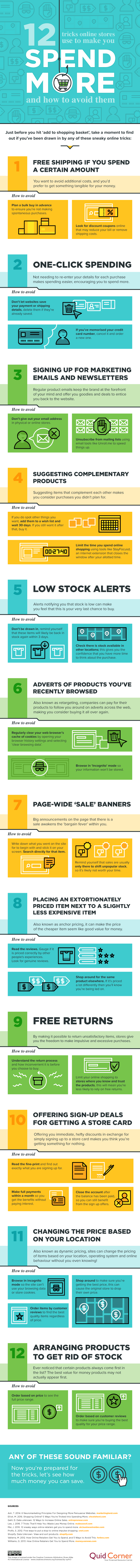 While most of the tricks may sound familiar to you once you read them, all too often you still fall into these traps and end up spending money on shopping things that you do not actually need. For example, things such as dollar minimums for free shipping, massive discount codes, convenient one click shopping just to name a few. Fortunately, the folks from QuidCorner have come up with an infographic that pinpoints some twelve sneaky tricks that online stores use to make you spend more money.